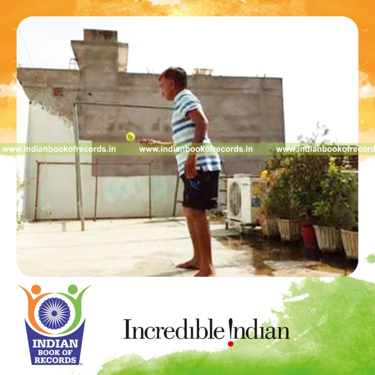 The Maximum Number of Consecutive Tennis Ball Bounces on Alternate Sides of a Knife counted to 1012 times. It was accomplished by Suresh Gaur at Gwalior, Madhya Pradesh, India on July 20, 2016.