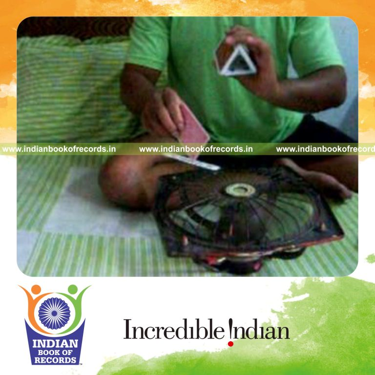 The Maximum Number of Consecutive Triangle Cuts while Spinning a Playing Card on a Playing Card Using a Fan counted to 31. It was accomplished by Kamal Aslam at Allahabad, Uttar Pradesh, India on November 02, 2012.