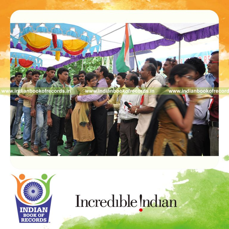The Maximum Number of Hugs Given in One Hour by an Individual counted to 2436. It was accomplished by Jayasimha Ravirala at Tekkali, Andrha Pradesh, India on September 29, 2012.