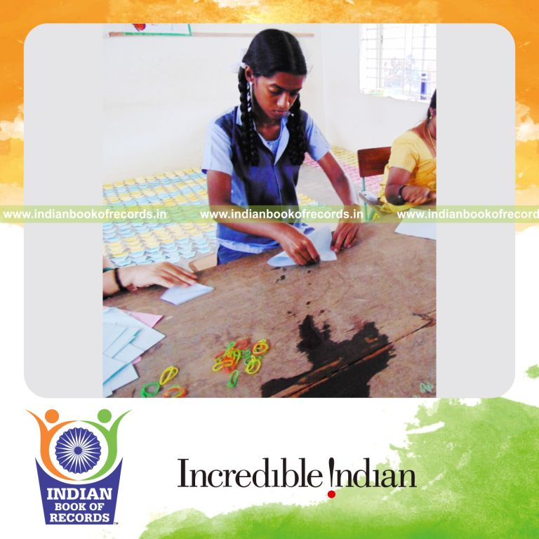 The Maximum Number of Origami Models made by a Minor (Female) in 12 Hours counted to 3604 models. It was accomplished by R.Sakthi Sowbarnika, Studying in Class XI C&D of Chinmaya Vidyalaya Matriculation Higher Secondary School, Coimbatore, Tamil Nadu, India on August 4, 2016.