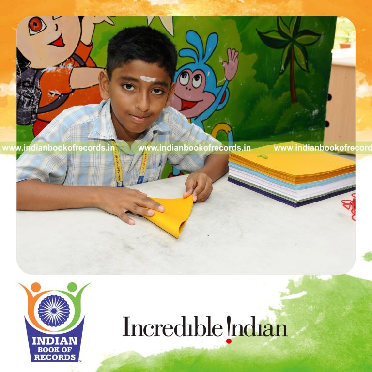 The Maximum Number of Origami Models made by a Minor (Male) in 6 Hours counted to 1105 models. It was accomplished by G.K. Harith Laxman, Studying in Class VII of Achariya Bala Siksha Mandir, Pondicherry, India on April 18, 2013.