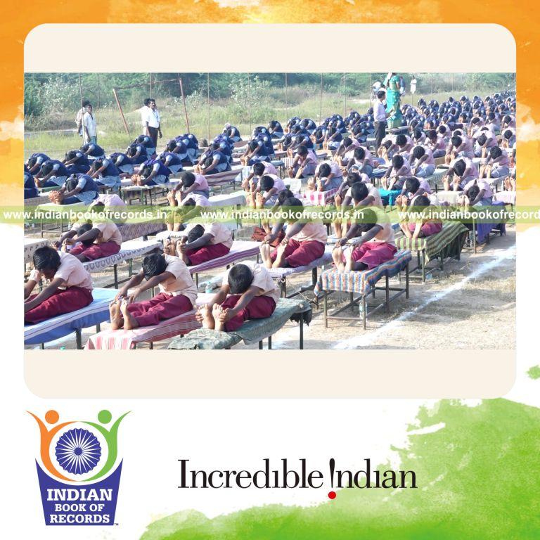 The Maximum Number of Participants Performing Yogasanas upon a Desk/Table Simultaneously (Single Venue) counted to 347 participants. It was accomplished by Government Higher Secondary School, Mazhaiyur and Department of School Education, Tiruvannamalai District in association with Rotary club of Tiruvannamalai Pride and Elite Circle, Tiruvannamalai District, Tamil Nadu, India on January 12, 2019.