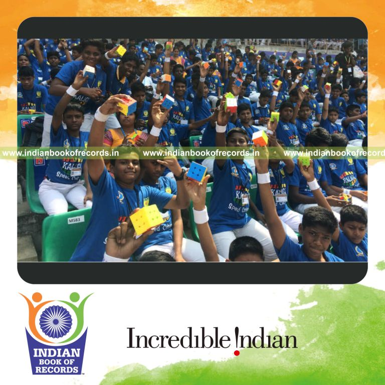 The Maximum Number of People Solving Rubik's Cubes counted to 3997. It was accomplished by Kaligi Ranganathan Montford (KRM) Group of Schools at Chennai, Tamil Nadu, India on January 27, 2018.