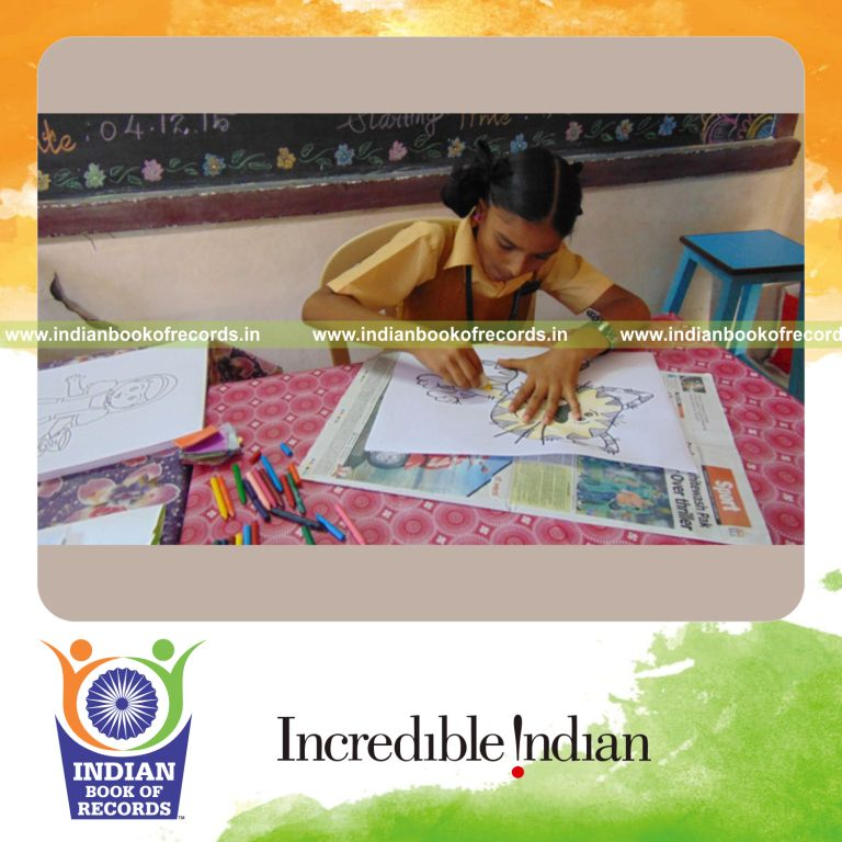 The Maximum Number of Pictures Colored by a Minor (Female) in 6 Hours counted to 67 pictures. It was accomplished by Jotsna.S.Matthew, Studying in Class VI of CMS Matriculation Higher Secondary School, Ganapathy, Coimbatore District, Tamil Nadu, India on December 4, 2015.