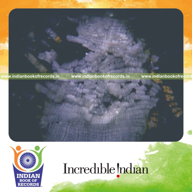 The Maximum Number of Pieces made from a Single Cucumber counted to 1,20,060 pieces in 2 hours, 12 minutes and 21 seconds. It was accomplished by Dr. S. Ramesh Babu, Bangalore, Karnataka, India on April 5, 1998.