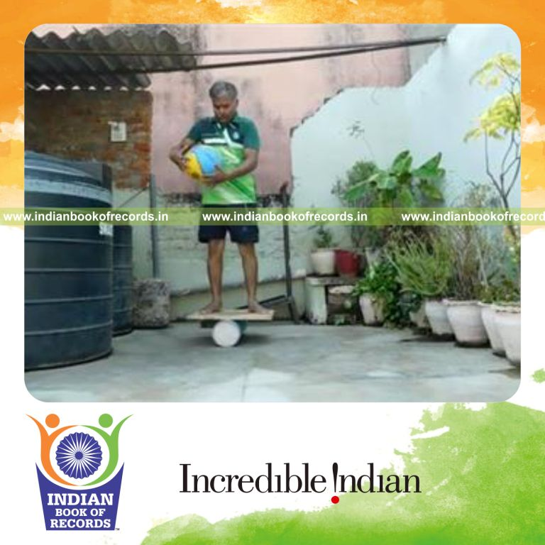 The Maximum Number of Times Circling Basketball Around Waist in One Minute while Balancing on a Rola Bola counted to 62. It was accomplished by Suresh Gaur at Gwalior, Madhya Pradesh, India on October 15, 2015.