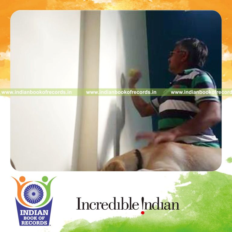 The Maximum Number of Times to Bounce a Tennis Ball off The Side of a Building in 30 Seconds While Petting a Dog counted to 169 times. It was accomplished by Suresh Gaur at Gwalior, Madhya Pradesh, India on March 28, 2017.