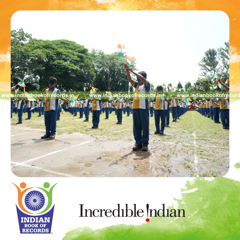 The Maximum Participants Performing a Sports Drill while Blindfolded and Holding National Flag Simultaneously (Single Venue) counted to 383. It was accomplished by Purna Chetana Public School, in Mysuru District, Karnataka, India on August 13, 2024.