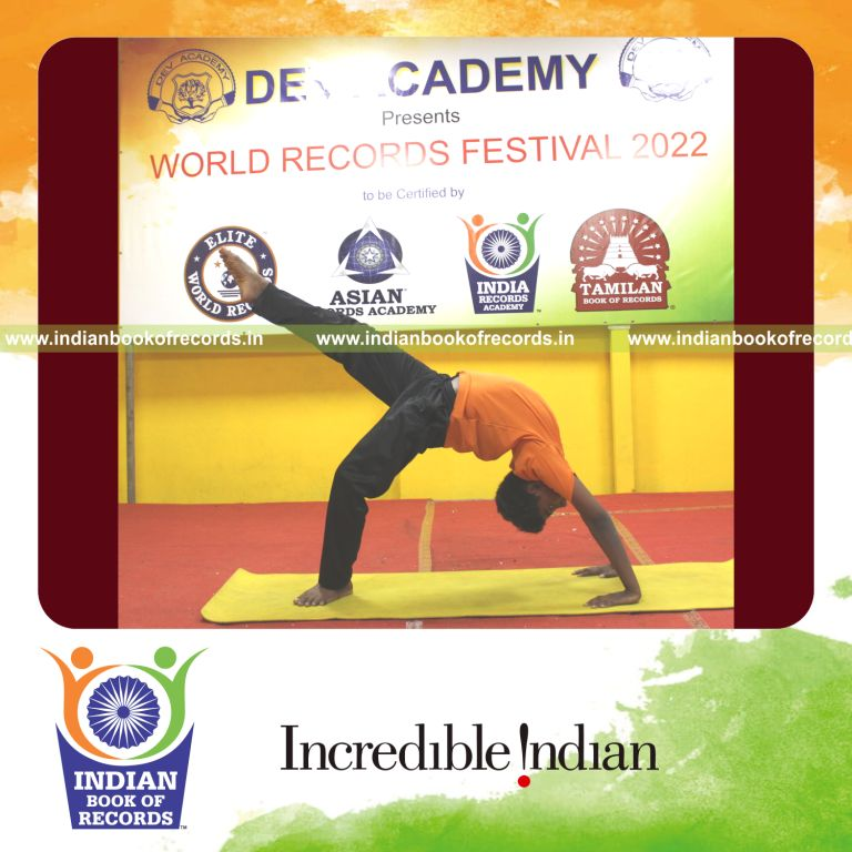 The Maximum Yogasanas Performed by an Individual (Minor-Male) in 30 Minutes counted to 236. It was accomplished by U.Gautham Dev, Student of Dev Academy, in Nerkundram, Chennai District, Tamil Nadu, India on August 28, 2022.